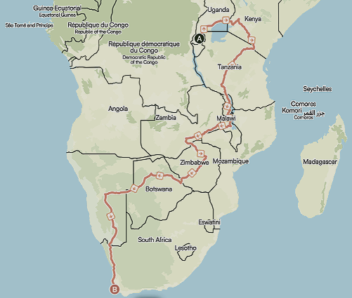 This 10,000-kilometre expedition from Kigali to Cape Town, will take me through 10 countries across Eastern and Southern Africa, including: